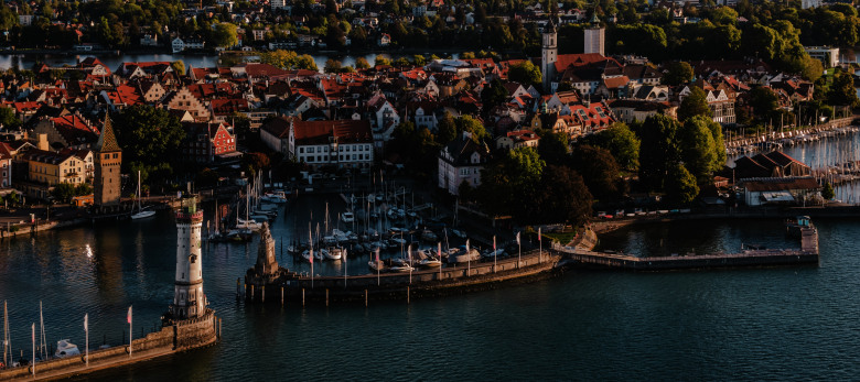 Ihre Reise beginnt in einer der charmantesten Städte am Bodensee. Nach der Ankunft empfängt Sie das berühmte Hafenpanorama mit dem majestätischen bayerischen Löwen und dem weißen Leuchtturm – im Hintergrund glitzert der See und die Alpen zeichnen sich eindrucksvoll am Horizont ab.