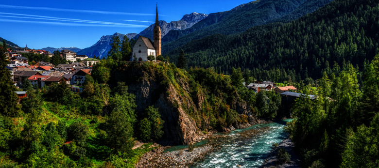 Die heutige Etappe folgt dem Lauf des Inns. In luftiger Höhe liegt Guarda, ein typisches Engadiner Dorf, das mit seinem Ausblick verzaubert. Radeln Sie durch gepflasterte Gassen, vorbei an traditionellen Häusern und begrüßen Sie die Einheimischen mit einem freundlichen „Bun di“. In Scuol angekommen, lockt Entspannung im Thermalbad Bogn Engiadina (Eintritt nicht enthalten) oder ein Spaziergang hinauf zum markanten Schloss Tarasp.