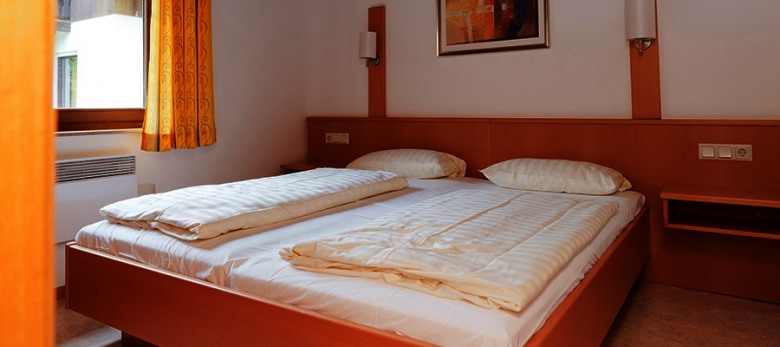 4‑Bett‑Appartment „Schneewittchen“: Zwei Schlafräume, Wohnzimmer (teilweise Kamin), Küche, Bad / WC.