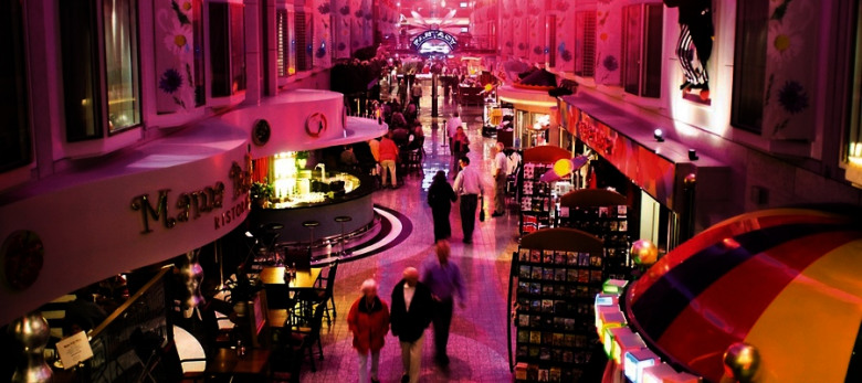 die über 3 Decks hohe und 160 m lange Shopping-Promenade,